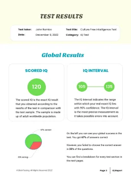 Our scores are real, and you can verify it yourself by buying our report with all the answers explained. The affirmation holds as long as you do not cheat. Also, take into account that our test evaluates solely fluid intelligence. If you want to be super precise, you need a test that evaluates all the different abilities of intelligence according to the Cattell-Horn-Carroll theory (CHC-model), the most validated intelligence model at the present.
